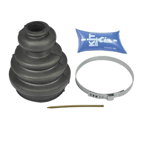 Fabricado pela renomada marca Kit & Cia, esse kit conta com os seguintes itens: 01 coifa homocinética, 01 graxa, 01 abraçadeira grande e 01 abraçadeira pequena. Esses componentes são essenciais para garantir a vedação adequada da homocinética, evitando o vazamento de graxa e protegendo-a contra poeira e sujeira.