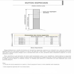 Para cozinhas com pe direito superior a 2,55 m. Temos disponivel para venda a parte, alguns tamanhos de dutos especiais. Nas imagens do anuncio disponibilizamos a informacao das medidas dos dutos especiais.