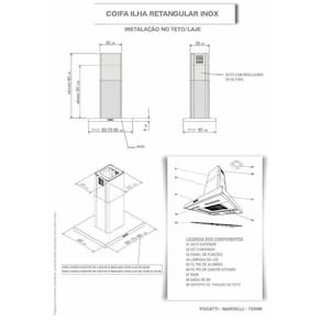 Coifa Ilha 90cm Retangular Terim Inox 220v Deixe sua cozinha mais moderna com a Coifa de Ilha Retangular da Terim Alem de pratica e bonita, possui a base e dutos em inox e acompanha filtro de aluminio e filtro de carvao ativado. A coifa pode ser instalada de dois modos distintos, como exaustor ou como depurador. Com design diferenciado, que facilita sua limpeza, iluminacao com lampadas de led e tres velocidades. Traga mais versatilidade para sua cozinha. Para Fogao cooktop de 4 bocas e indicado coifa de 60 ou 70 cm Para Fogao cooktop de 5 bocas e indicado coifa de 75, 80 ou 90 cm Para Fogao cooktop de 6 bocas e indicado coifa de 90 cm ou mais Observacao importante, sempre observar a largura do seu fogao, para que a largura da coifa seja sempre um pouco maior que o fogao cooktop