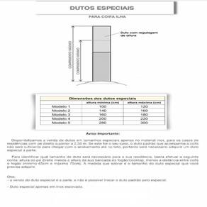 Para cozinhas com pé direito superior a 2,55 m. Temos disponível para venda à parte, alguns tamanhos de dutos especiais. Nas imagens do anúncio disponibilizamos a informação das medidas dos dutos especiais.