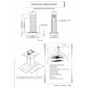 As dimensoes do produto podem sofrer uma pequena variacao de largura do vidro, de ate 7 sete milimetros. Por este motivo, quando a coifa for instalada de forma embutida em nichos, o fabricante recomenda que seja considerada uma folga de pelo menos 1 cm em cada lado