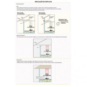 As dimensões do produto podem sofrer uma pequena variação de largura do vidro, de até 7 sete milímetros. Por este motivo, quando a coifa for instalada de forma embutida em nichos, o fabricante recomenda que seja considerada uma folga de pelo menos 1 cm em cada lado