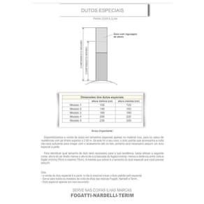 Para cozinhas com pé direito superior a 2,55 m. Temos disponível para venda à parte, alguns tamanhos de dutos especiais. Nas imagens do anúncio disponibilizamos a informação das medidas dos dutos especiais.