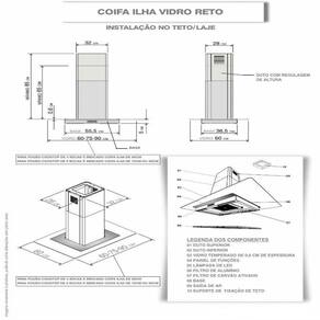 As dimensoes do produto podem sofrer uma pequena variacao de largura do vidro, de ate 7 sete milimetros. Por este motivo, quando a coifa for instalada de forma embutida em nichos, o fabricante recomenda que seja considerada uma folga de pelo menos 1 cm em cada lado