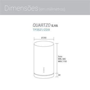 - Caracteristicas: Funciona tambem como depurador sem a necessidade de saida externa Dupla filtragem com tela filtrante em aluminio lavável e filtros de carvão ativado Duto regulador de altura Iluminação com 2 lâmpadas de Led - Baixo consumo de energia - Especificacoes Técnicas: Referencia: TP3522IX Cor: Inox Instalacao: Ilha Velocidade: 3 Velocidades Voltagem: 220V Potência: 330W Consumo de Energia: 0,33kWh Sucção: Ate 1.100m/h Medidas AxLxP : 123 cm x 35cm x 35cm Peso: 20,5kg Marca: Não Informado Ean: 7896518508267
