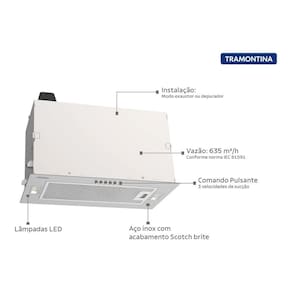 Se você possui uma cozinha compacta, mas não abre mão de nenhum item para deixá-la ainda melhor, precisa conhecer a coifa de embutir Tramontina Incasso 51 em aço inox com acabamento Scotch Brite 51 centímetros.