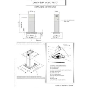 As dimensões do produto podem sofrer uma pequena variação de largura do vidro, de até 7 sete milímetros. Por este motivo, quando a coifa for instalada de forma embutida em nichos, o fabricante recomenda que seja considerada uma folga de pelo menos 1 cm em cada lado