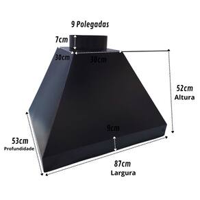 Coifa Para Churrasqueira Pintura Eletrostatica Preto 87x53x52