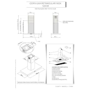 Coifa Terim Ilha / Teto Retangular Inox 120 Cm Inox 110v