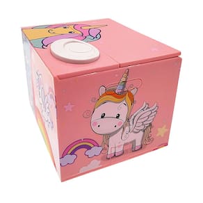 Tamanho: 12,5 x 10,5 x 9,5 cm Peso: 380 g Material: PVC 1. Magical Unicorn Coin Snatcher Coloque uma moeda no prato branco e um unicórnio encantador a espreita e a pega com o casco, trazendo sorrisos e diversão para economizar dinheiro. 2. Rainbow Fantasy Design Brilhante e colorido com ilustrações de arco-íris, estrelas e unicórnios em tons pastel, este cofrinho é uma adição sonhadora ao quarto de qualquer criança. 3. Operação fácil e divertida Basta inserir uma moeda e pressionar o botão, perfeito para crianças que aprendem a economizar por meio de uma interação lúdica. 4. Leve e seguro para crianças Feito de plástico PVC durável, este banco é seguro e fácil de transportar. Dimensões: 12,5 x 10,5 x 9,5 cm; Peso: 380 g. 5. Ótimo para amantes de unicórnios Um brinquedo mágico para economizar dinheiro que funciona como uma decoração de quarto extravagante, perfeito para aniversários, feriados ou recompensas surpresa.