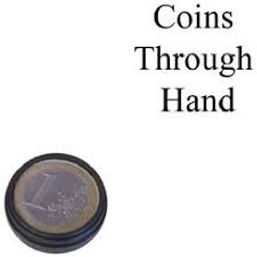 O mágico mostra uma pequena caixa preta, onde ele coloca 4 moedas de 25 centavos. A caixa e colocada em cima da mão e com um gesto mágico e sem movimentos suspeitos, as moedas penetra na mão e cai sobre a mesa, mostrando a caixa vazia no final muito fácil de fazer. Também funciona com moedas de 50 centavos.