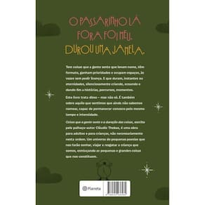ATÉ É QUANDO O TEMPO SONHA. AINDA É QUANDO O TEMPO CANSA. INFÂNCIA ESTÁ DENTRO DO ADULTO. NÃO DURA SÓ UMA CRIANÇA. Quanto conseguimos nomear o que a gente sente? Quanto tempo dura uma emoção? Quantas coisas cabem em um instante? Quanto do nosso passado se faz presente no agora? E, finalmente, quanto de nós é feito das crianças que fomos? Baseado em pequenos poemas cheios de ternura e afeto, além de ricamente ilustrado pela artista Natalya Osowiec, Coisas que a gente sente e a duração das coisas é um manifesto para nos lembrarmos da infância que resiste em nós, quando o tempo parecia ter a dimensão de um conta-gotas. Do escritor bestseller Cláudio Thebas, uma ode a tudo aquilo que nos constitui. Marca: Não Informado