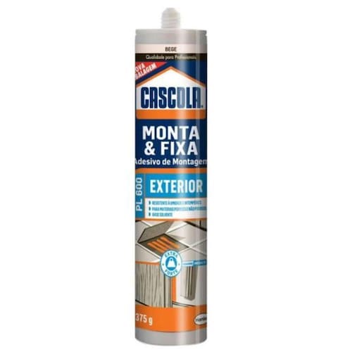 O adesivo de montagem cascola monta & fixa pl600 exterior 375g é resistente à água e aos agentes climáticos, ideal para trabalhos de bricolagem externos e internos, sem a necessidade de furar, parafusar ou pregar.