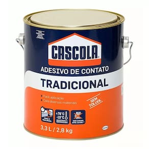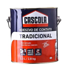 Adesivo de contato Cascola Tradicional 2,8 kg Cascola Tradicional sem Toluol é um adesivo de contato de alto desempenho, ideal para diferentes materiais e aplicações. É indicado especialmente para a colagem de laminados decorativos, pisos de borracha, couro, metais, lambris e diversos materiais sintéticos em madeiras compensadas, aglomerados, MDF, HDF, concreto, cimento, entre outros. O processo de laminação pode ser executado tanto em superfícies curvas como em planas. Pode ser utilizado em ambientes internos e externos. A aplicação com Cascola Tradicional sem Toluol é simples, proporcionando total aderência e excelente acabamento. Possui alta força de colagem e performance - Adere em diversos materiais - Resistente à água - Não sofre inchamento, evitando possíveis desprendimentos das peças. Obs: Não adere materiais à base de Polietileno, Polipropileno e PTFE (resina antiaderente). Conteúdo:lata de 2,8 kg 3,3 lAplicações:Couro, Linóleo, Borracha, Folha de metal, Compensado, Fibras, MDF, HDF, Laminados decorativos, Concreto, Cimento, Metais, Lambris. Composição:Solvente Alifático, Solventes Oxigenados, Resinas Sintéticas, Borrachas Sintéticas e Aditivos.Não contém substâncias consideradas inalantes com potencial de abuso que podem desencadear a autoadministração.