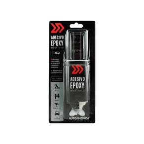 Cola adesivo epoxy titânio cyclo multiúso metais vidro 25ml Adesivo epoxy multiuso cola e repara rapidamente superfícies de metal, madeira, plástico, telhas, cerâmica, fibras de vidro, pvc, concreto, entre outras. A cura total do produto é de uma hora, em 25ºc. Características: - repara superfícies - resistente a altas temperaturas - secagem rápida Modo de usar: 1 -a superfície deve estar limpa, fria e fora do sol, livre de óleo, graxa ou cera 2 - remova a seringa da embalagem 3 - corte as pontas de cada bocal com uma lâmina afiada 4 - empurre o pistão da seringa para liberar quantidades iguais de resina e catalisador em uma superfície descartável e limpa 5 - mexa com uma espátula por 2 a 3 minutos, até que a cor fique homogênea 6 - aplique a mistura uniformemente na área desejada dentro de 5 minutos Benefícios - força compressiva de 6300 psi - resistente a altas temperaturas: até 121 ºc - secagem rápida: de 4 a 6 minutos - cor após a cura: preto + branco Informações técnicas: Tempo de cura: Parcial de 4 a 6 minutos Total de 1 hora, em 25 ºc Superfícies recomendadas: - cerâmica - madeira - vidro - partes automotivas; Marca: cyclo Código do fabricante: 414545005 Conteúdo da embalagem: 1 unidade do vendedor: 3 meses Observações para uma boa compra Antes de efetuar a compra tire todas suas dúvidas no campo de perguntas. Para peças mecânicas técnicas, confirme a aplicação com seu mecânico. Mantenha seus dados e endereços atualizados no site. Marca: Não Informado