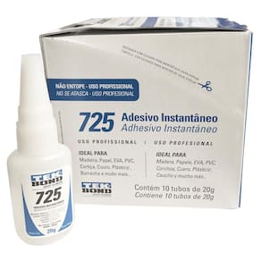 Cola Adesivo Instantanea Tekbond 725 20g Multiuso 10 Peças Indicado para superfícies flexíveis. Adere uma ampla variedade de metais, plásticos, borrachas e outros materiais.