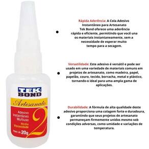 Transforme suas ideias em realidade com a Cola Adesivo Instantâneo Tek Bond e dê vida aos seus projetos de artesanato com praticidade e eficiência!