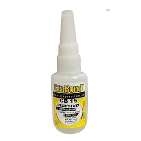 Cola Adesivo Instantâneo Cb 15 Ciabond 20g Anti Entupimento Adesivo Instantâneo CB 15 20g Ciabond, bico com pino de metal que evita o entupimento. O adesivo instantâneo CB 15, da CIABOND, faz parte da linha Cianoacrilato, que adere em segundos á temperatura ambiente, superfícies lisas e porosas, aderindo a maioria dos substratos, tais como: - Borracha - Madeira - Cerâmica - Vidro - Cortiça - Metais - Couro - Termoplástico
