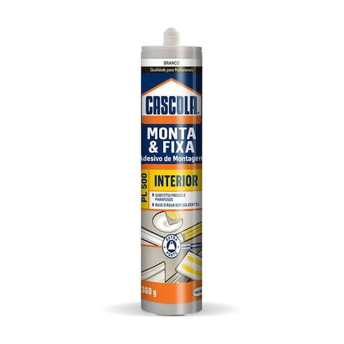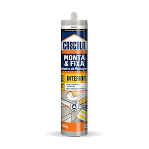 Cascola monta & fixa pl 500 é uma cola de montagem de alta resistência indicada para instalações, decorações e reparos internos, sendo uma solução ideial para colagem de madeira, mdf, compensando, drywall, polestireno expandido, cerâmica, concreto, metal, pedra, vidro e cortiça. Prático de usar, cascola monta & fixa pl 500 garante a eficiência na aplicação, uma vez que o produto proporciona uma excelente colagem e força final, eliminando a necessidade de furar, parafusar ou pregar.