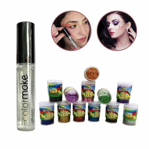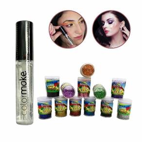 Cola gliter 12 cor maquiage festa fantasia carnaval Cola para glitter líquida 6ml incolor maquiagem artistica e glitter cores . Cola e glitter, para fazer aquele make incrível. A cola tem fórmula leve e incolor desenvolvida para proporcionar brilho intenso, longa duração e secagem rápida, sem causar o indesejado efeito craquelado. Isso permite que você alcance um resultado surpreendente em sua make, fácil aplicação, após aplicação use glitters para dar brilho e beleza em sua maquiagem. O kit contém: 1 cola de 6ml. 12 potes de glitter 3g cada cores . Modo de uso Com auxílio do aplicador, coloque uma pequena quantidade do fixador sobre a ele, deposite o glitter e espere secar. Precauções: não ingerir, manter fora do alcance de crianças, não aplicar sobre a pele irritada ou lesionada. Ao sinal de qualquer irritação suspender o uso do produto. Como remover Demaquilante. Marca: Não Informado