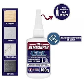 Almasuper aei1500 gel é um adesivo instantâneo de viscosidade alta, indicado para materiais porosos ou absorventes. Permite maior tempo de posicionamento por ser mais lento.