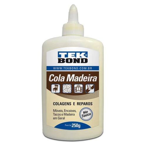 Cola madeira 250g (caixa c/ 24 un) Conteúdo: Caixa com 24 tubos de 250g. Aparência (visual): Líquido levemente amarelado com odor característico. Viscosidade a 25°C: 30.000 a 60.000. Teor de sólidos: 39 a 41%. pH a 25°C: 6,00 a 8,00. Densidade a 25°C: 1,03 a 1,05. Temperatura de aplicação: + 5 a 45°C. Temperatura de serviço: - 30 a 90°C. Aspecto do filme: Transparente e flexível. Aplicação: É ideal para colagens e reparos de móveis, encaixes, tacos, montagem de conjuntos de madeira e aplicações de laminação a frio. Excelente adesão a materiais porosos, tais como concreto, tecido, couro, têxteis, madeira, papelão e feltro. Características: É uma emulsão de copolímero de acetato polivinílico especial que adere a diversos tipos de substratos e materiais porosos. Instruções de uso: 1. Aplicar uma camada uniforme do adesivo em uma das superfícies, em seguida faça a união das peças antes da secagem do adesivo e prense. 2. A cura total é de 24 a 48 horas em função do clima, quantidade de adesivo e peso das peças a serem fixadas.