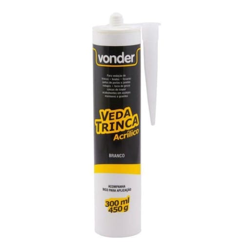 Indicado para vedar trincas, fendas, fissuras, juntas de portas e janelas, rodapés, forro de gesso, sanca e molduras de isopor, acabamentos em azulejos, mármores e granitos. Adesivo vedante acrílico de fácil aplicação. Possui ótima aderência e alta resistência. Após cura, aceita pintura com qualquer tipo de tinta. Contém fungicida.