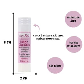 A cola para Tecido em Bastão Mantém o tecido no lugar e torna a costura mais fácil e confortável, ela substitui o uso de alfinetes para a fixação temporária de moldes ou bainhas.