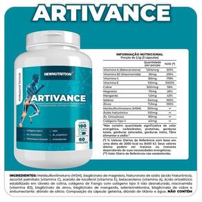Artivance newnutrition foi elaborado para auxiliar na saúde das articulações, contribuindo com a nutrição, desenvolvimento e manutenção dos tecidos cartilaginosos, auxiliando ainda na melhoria da lubrificação e na longevidade da saúde articular.