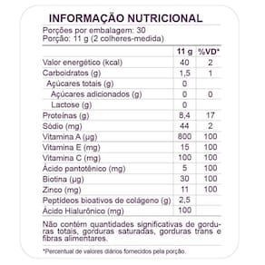 ? Contém colágeno Verisol®: peptídeos biativos que ajudam na saúde da pele, melhorando sua estrutura, firmeza, elasticidade e formação de rugas.