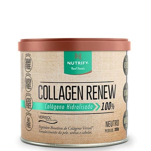 Collagem Renew Nutrify contém peptídeos bioativos de colágeno Verisol, que ajudam a recuperar a firmeza dos tecidos, melhorando sua aparência. A firmeza e a sustentação de nossa pele estão diretamente relacionadas à produção de colágeno pelo organismo, que diminui progressivamente ao longo dos anos, ocasionando flacidez e outros sinais de envelhecimento.Com a fórmula de Collagem Renew Nutrify, os peptídeos de colágeno e o ativo VERISOL são utilizados para reduzir o volume das rugas ao redor dos olhos, suavizar os sinais do envelhecimento, diminuir a perda de água transepidérmica, melhorar a elasticidade cutânea e aumentar a produção de colágeno e proteoglicanas na pele, substâncias responsáveis pela firmeza e hidratação cutânea.Collagem Renew Nutrify NÃO tem adição de açúcar, lactose, glúten, corantes e adoçantes artificiais, oferecendo ainda vitaminas e minerais antioxidantes que favorecem a absorção dos peptídeos e promovem o fortalecimento de unhas e cabelos.