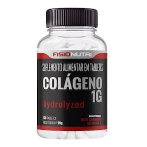 Colágeno Hydrolyzed 1g + Vitaminas 120 tabs - FisioNutri O colágeno é uma proteína predominante no nosso organismo, porém, com o início da fase adulta, a deficiência de colágeno começa a ser notada, pois o organismo diminui sua produção, sendo uma das principais causas do envelhecimento, tornando-se necessária a suplementação a base de colágeno hidrolisado. O Colágeno Hydrolyzed 1G + Vitaminas - Fisionutri, produto de origem animal e hidrolisado, foi desenvolvido com o intuito de complementar o consumo desta proteína no seu dia a dia, adicionado com Beta Caroteno vitamina A que auxilia na manutenção da pele e adição de vitamina C que auxilia na formação do colágeno. Renove hoje sua aparência com Colágeno Hydrolyzed 1G + Vitaminas da Fisionutri.