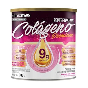 Colágeno Peptgenderma Clinicmais 300g Frutas Vermelhas O que é o Colágeno PeptGenderma Premium O Colágeno PeptGenderma Premium é um suplemento alimentar solúvel formulado com peptídeos de colágeno biodisponível, silício, biotina, vitaminas e minerais essenciais. Sua composição avançada entrega 9g de proteína por porção, proporcionando um suporte nutricional para a manutenção da firmeza e elasticidade da pele. O Colágeno PeptGenderma Premium possui contraindicações Este suplemento é indicado para adultos acima de 19 anos. Não deve ser consumido por gestantes, lactantes ou crianças. Pessoas com condições de saúde específicas devem consultar um antes do uso. Qual a forma correta de uso do Colágeno PeptGenderma Premium Quantidade diária recomendada: 12g 2 scoops e meio ou 2 colheres de sopa . Modo de preparo: Diluir em 200ml de água. Sugestão de consumo: Preferencialmente pela manhã ou em outro horário de rotina diária. O Colágeno PeptGenderma Premium é regulamentado pela ANVISA Sim. Conforme a legislação vigente, este produto é dispensado de registro na ANVISA, pois se enquadra na categoria de suplemento alimentar. Marca: Não Informado Ean: 7899592854695