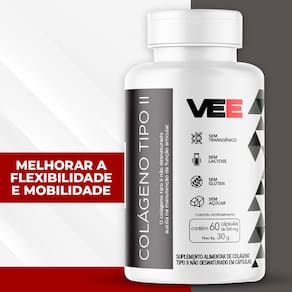 💪 Colágeno Tipo II VEE Suplemento premium que auxilia na manutenção da saúde das articulações, ideal para quem sente dores, rigidez ou desconforto ao se movimentar.