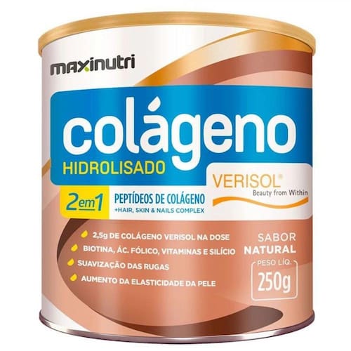 Ingredientespeptídeos de colágeno (verisol®), polidextrose, dióxido de silício (antiumectante), mix de minerais e vitaminas: biotina, ácido fólico, ferro, cobre, manganês, vitamina a, vitamina b1, vitamina b2, vitamina b3, vitamina b5, vitamina b6, vitamina b12, vitamina c, vitamina d3, vitamina e, selênio e zinco.modo de preparoadicionar 10g (2 colheres dosadoras rasas) de colágeno hidrolisado verisol® em 250ml de água ou bebida de sua preferência, mexer até completa dissolução. beba imediatamente após o preparo.sugestão de usopode ser utilizado no café da manhã, juntamente com frutas, vitaminas, cereais matinais, iogurtes, leite e sucos, conforme sua preferência.conservaçãomantenha este produto bem fechado em local fresco, seco e ao abrigo da luz solar. após aberto, mantenha a embalagem bem fechada. o produto deve ser consumido em 30 dias.rendimento25 dosesnão contém glútendispensado de registro conforme rdc 27/2010advertênciasgestantes, nutrizes e crianças até 3 (três) anos, somente devem consumir este produto sob orientação de nutricionistas ou médico.