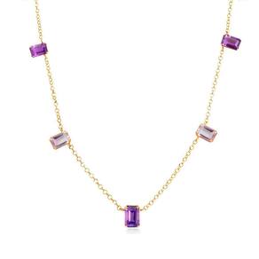 Pedra: ametista retangular Cor da Pedra: Violeta Quantidade de Pedras: 5 pedras Tamanho: 45 cm Malha da Corrente: Elos Portugueses Cor : Dourado Material: ouro 18K Peso: 2.4 gramas aprox. Estilo: moderno e elegante
