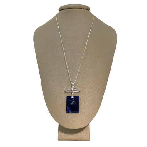 Colar 60cm Prata 925 Claro-Profundo Cristal e Sodalita