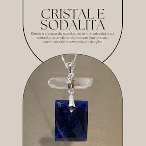 Cada pedra deste pingente possui qualidades energéticas distintas: o cristal é aclamado por sua clareza e capacidade de purificar a mente, enquanto a sodalita é tida como a pedra da intuição e da expressão autêntica, estimulando o pensamento racional e aprofundando a compreensão interior.