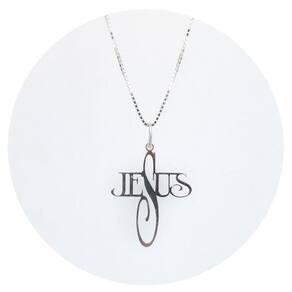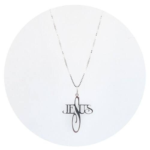 Colar 60cm Prata 925 Escrita Jesus - Ponte Vecchio Joias um lindo colar prata 925 de malha veneziana de escrita Jesus