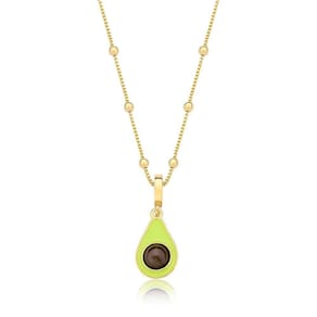 Nosso Colar Abacate traz uma linda pérola cintilante e detalhes esmaltados na cor da fruta. Seu revestimento em Ouro garante o toque final à esta peça. Sua corrente veneziana possui pequenas esferas que acrescentam charme e beleza.