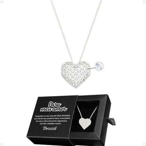 Colar Aço Feminino + Pingente Amor Coração Strass + Caixa Aproveite esta incrível oportunidade de presentear o SEU AMOR com um presente memorável! Este kit excepcional inclui: - 1 colar feminino em aço inoxidável, na deslumbrante cor prata. - 1 pingente em aço inox, ricamente adornado com strass transparente em forma de coração. - 1 caixa premium Orizom Maria, contendo uma mensagem especial para demonstrar todo o seu afeto ao SEU AMOR!