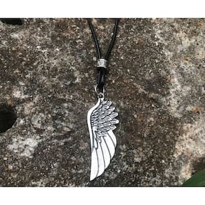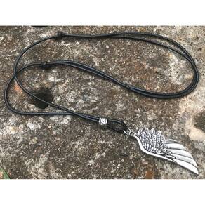 Colar Asa de Anjo Cordão Regulável Prateado Material: Cordão Encerada e Metal Tamanho: Regulável Pingente: 5,5cm Cordão Fechado: 20cm Máximo: 43cm do pescoço à altura do pingente Cuidados com a peça: Evitar molhar frequentemente e contato com produtos químicos como, perfumes, hidratantes, entre outros. Marca: Bicudos Acessorios