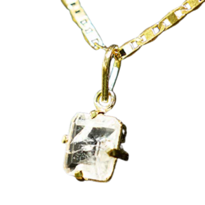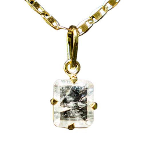 Pingente Baguette Pedra Cristal Natural Facetado na Garra Dourada, Gema Cristal de Quartzo Baguette Facetado Especial Pedra com Montagem na garra dourado com perinha para passar o cordão Pedra Genuina com origem garimpo lapidação e montagem manual
