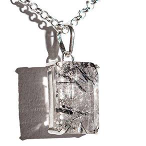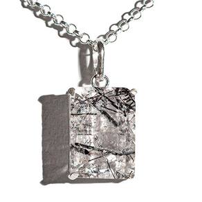 Colar baguette turmalina preta incrustada no cristal com garra na prata: deslumbrante peça que adiciona brilho e elegância a qualquer roupa.