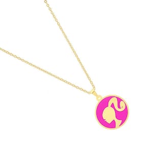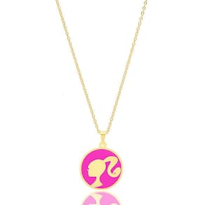 Colar Barbie Resina Rosa Folheado A Ouro 18k