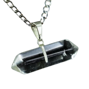 Pingente Bi Ponta Cristal Natural pedra de garimpo com lapidação artesanal montado com pino e presilha Prateado, ideal para colar e pulseiras, ja vai montado.