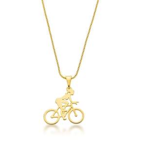 Colar Bicicleta Laser Banhado a Ouro 18k 45cm -
