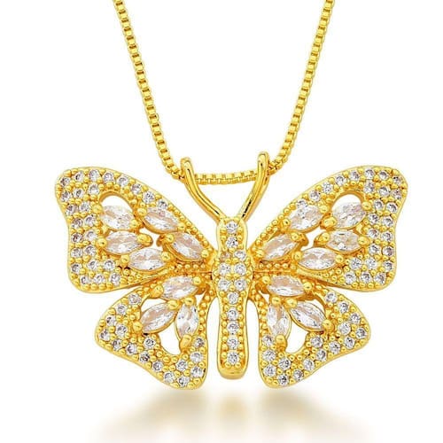 Colar Borboleta Cravejada com Zirconias Banhado a Ouro 18k Cristal -