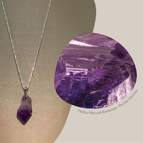 Colar Cadeado Prata 925 Ametista Bruta - Ponte Vecchio Joias