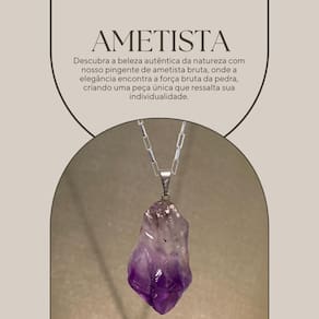 Este pingente de ametista exibe uma beleza estonteante, com nuances de roxo profundo e contornos naturais que destacam a sua origem terrena e a habilidade artesanal na sua montagem.